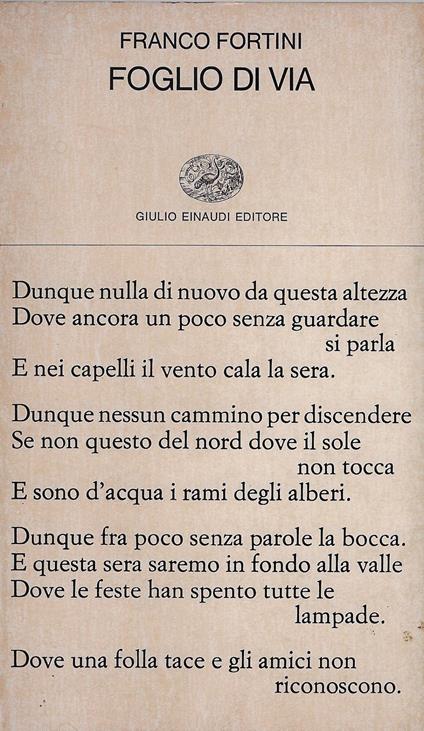Il titolo del romanzo è il titolo di una poesia di Franco Fortini: con la poesia faccio un po' fatica, non è entrata nelle mie corde. Dello stesso autore ho preferito Foglio di via.